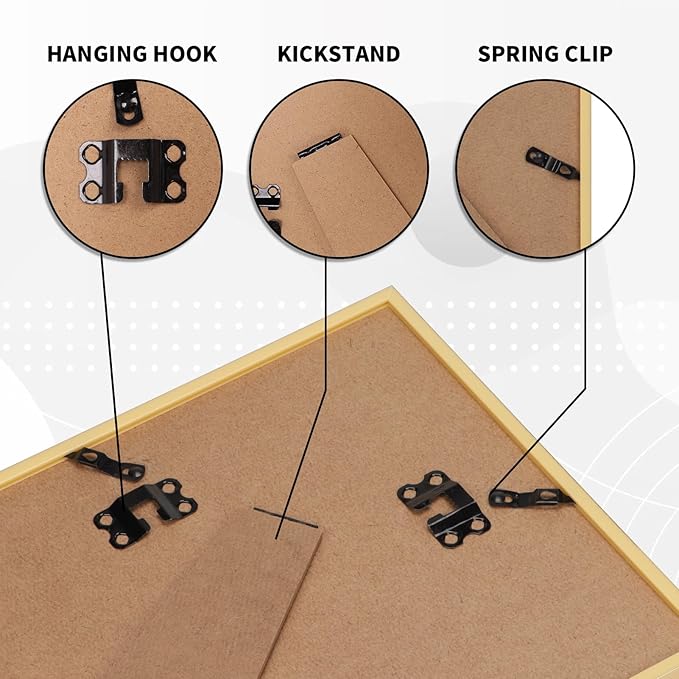 - Easy to use: These 8 1/2x11 frames typically come with user-friendly features like easy-open tabs at the back for quick loading and unloading of certificates or photos. They also have ready-to-use hooks and kickstand for hassle-free wall hanging or table top display.