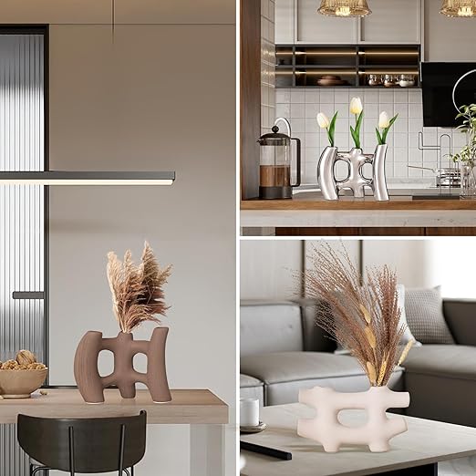 - Aesthetic Home Decoration: This decorative vase is manufactured by exquisite craftsmanship, making it more practical and durable to decorate your personal space. Put on any place as you like, such as bookshelf, mantel, TV cabinet, nightstands, office desk, dinner table etc. It brings a sense of modernity and a stylish atmosphere to home, showing your taste and personality.