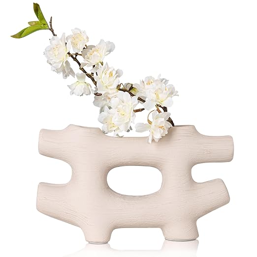 - Natural Design: The exterior design of the fence incorporates elements of nature, making this cream vase more visually appealing. The design is simple, generous and elegant, not just a cute vase but a table centerpiece for home or office decor. There are three holes at the bottle mouth allow you to deliver creativity freely and show your artistic for flower arrangement.