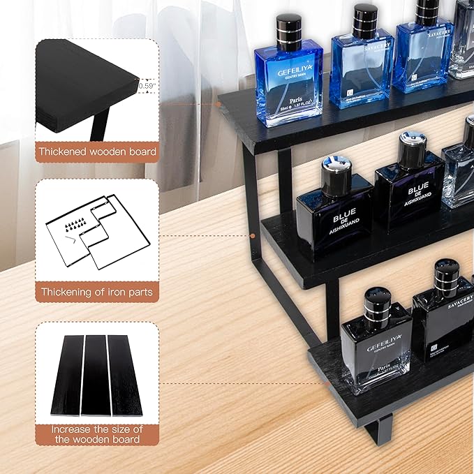 - "Multi functional pure wood shelf: 3-layer multi-functional display shelf can be used to make perfume/fragrance/small ornaments/succulent plants/spice shelf/display shelf for storing and planting various items
