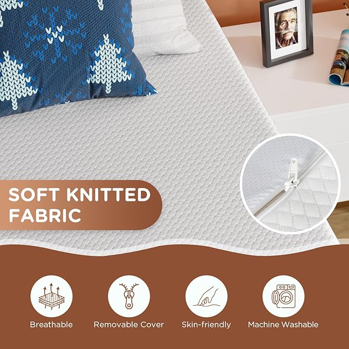 - MATERIAL & CONSTRUCTION:To improve support and heat dissipation, menory foam mattress is designed with three layers all-foam system, including comfort foam, high density gel foam and durable support base foam for ultimate comfort