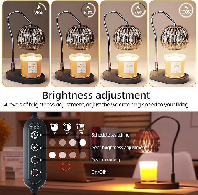 - 【4-Level Dimmer for Custom Ambiance】Adjust the brightness with 4 levels of dimming to control the melting speed and fragrance intensity. Whether you want a soft glow for relaxation or a brighter light for faster scent release, this candle warmer lamp adapts to your needs.