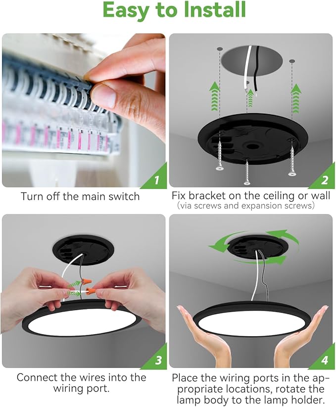 - Time-saving Installation: Clear instructions included, just take 3 easy steps, and the bright close to light fixtures ceiling mount can be fitted quickly in a few minutes.【Warm Tips】This lighting fixture's ceiling only works with regular ON/OFF wall switches