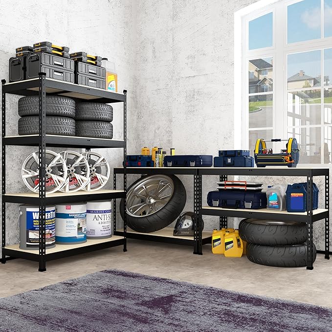 - 【 Heavy Duty & Long-lasting】This 4-tier garage shelving is made of high-quality thicker MDF boards and 0.03" thicker heavy duty galvanized metal frame, sturdy and ensuring. The metal frame is covered with premium powder coating to give it a smooth surface. Each shelf holds up to 400 lbs, 4 tier shelves' total max load weight is 1600 lbs