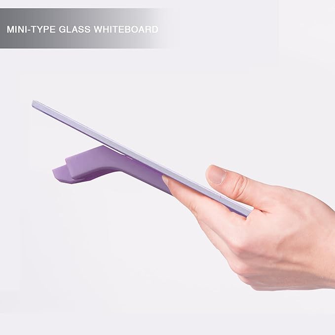 Small Glass Desk Whiteboard Dry-Erase Board with Clock, Small Travel Clock Keychain with Desk Notepad, Time Table Whiteboard for Desk Digital LED Light Display, 8x6 in with Accessories, Purple