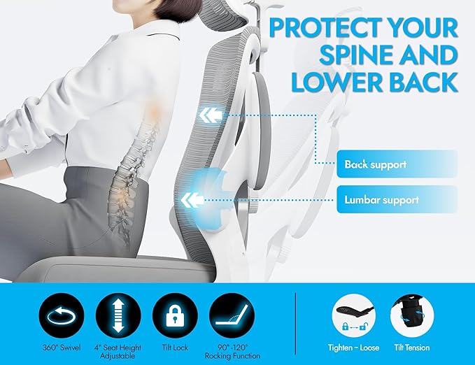 - Ergonomic Office Chair: Experience unparalleled support with our ergonomic office chair, designed to provide comprehensive assistance for your head, back, hips, and arms. Tailored lumbar support ensures your comfort and well-being. Suitable for people of about 5'5" to 6'2". Easily adjust seat height, headrest, backrest, and flip-up arms to cater to diverse needs, offering comfortable support during extended periods of sitting