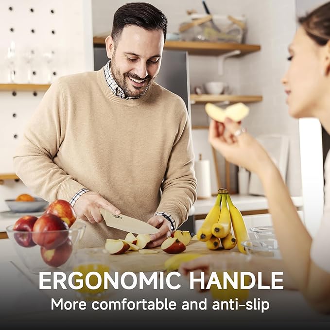- DISHWASHER SAFE - Ceramic coated knives possess non-stick, rust-resistant, and heat-resistant properties, making it dishwasher safe, effortless to achieve clean cuts and easy to wash off.