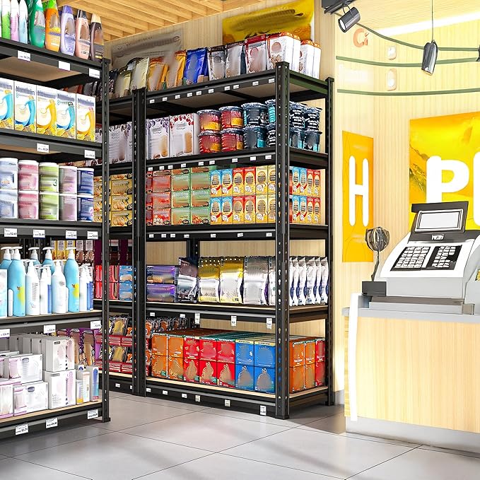 - 【11.8"D x 27.6"W x 60"H Multifunctional Heavy Duty Shelving】The perfect size metal shelf is suitable for garage, pantry, closet, kitchen, warehouse, basement, living room, office, study, and other different spaces. The shelves not only expand your storage space and make your home more clean, but the open space allows you to find items at a glance