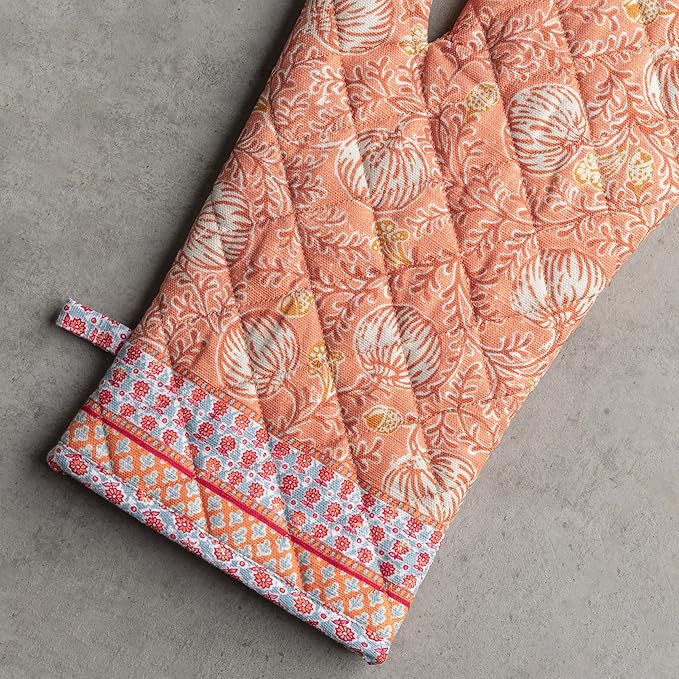 Maison d' Hermine Oven Gloves 100% Cotton Oven Mitt 7" x 13" with Loop Heat Resistant BBQ Cooking Gloves for Thanksgiving Christmas Decorations Baking Handling Hot Pans (Pack of 1, Harvest Festival)