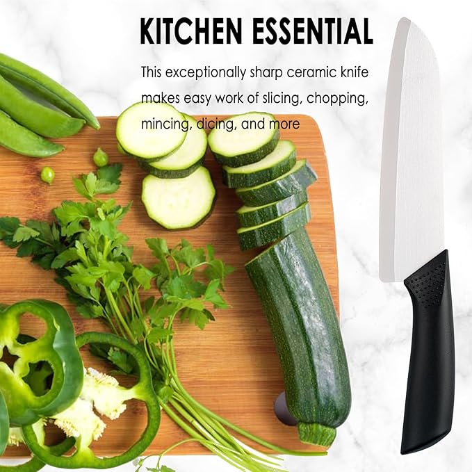 7-inch Ceramic Santoku Knife with Cover - Light, Precise, Sharp Ceramic Knife - Japanese Chef's Kitchen Knives with Gift Box