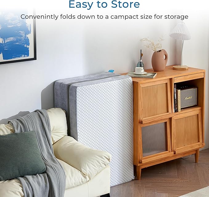 - Odorless From Unpacking Moment: 96 Hours natural ventilation and premium Memory Foam for removing chemical smell! Enjoy odorless foldable mattress right at the moment you open it! We select high-quality Meomry Foam and air out for you in constant temperature for 96 hours in advance, ensuring no odor continues to cut through.