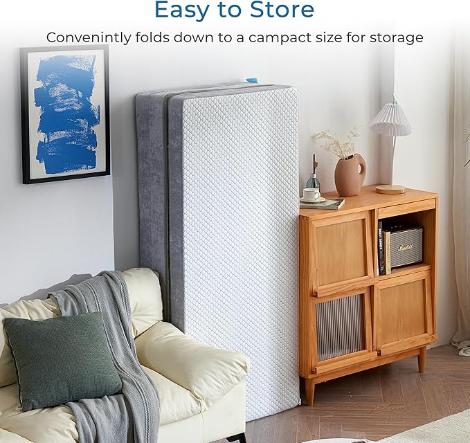 - Odorless From Unpacking Moment: 96 Hours natural ventilation and premium Memory Foam for removing chemical smell! Enjoy odorless foldable mattress right at the moment you open it! We select high-quality Meomry Foam and air out for you in constant temperature for 96 hours in advance, ensuring no odor continues to cut through.