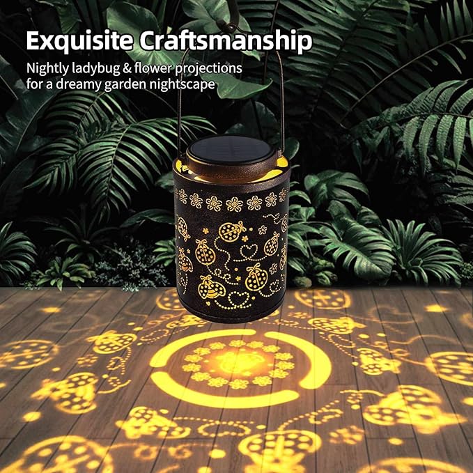 - Brighter Solar Lighting for Longer Evenings: This ladybug solar lantern outdoor waterproof features a high-efficiency solar panel for twice the brightness of original models. After just 6-8 hours of sunlight, it provides 8-10 hours of warm illumination with wider, clearer patterns, ideal for enhancing your outdoor solar lights for yard decoration. No cords or wiring, just turn it "On" to automatically emit light in dim environments