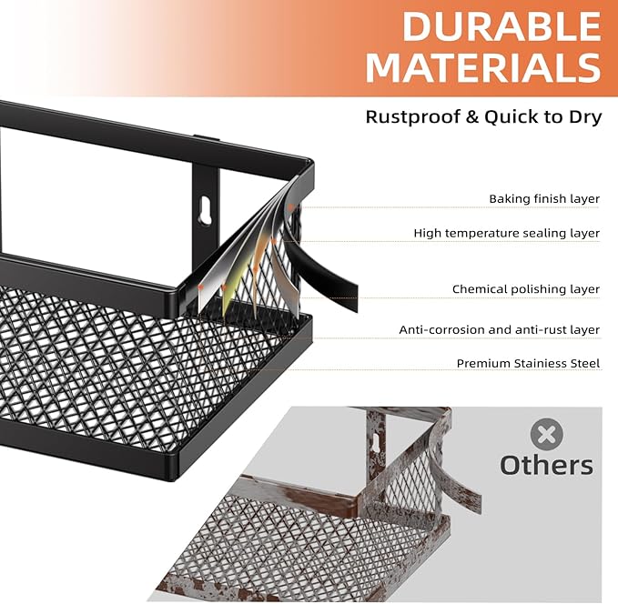 - Premium Metal Material and Stable Storage: The spice rack wall mounted is made of thickened high-strength carbon steel,is waterproof, rustproof, easy to clean.Our spice rack comes with additional 2.36-inch side guards and reinforced adhesive stickers to ensure safety and stability.