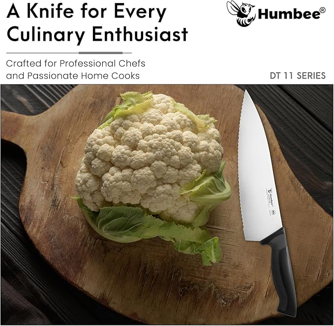 10 Inch Professional Chef Knife with Ergonomic Handle – NSF Certified Stainless Steel Kitchen Knife, Serrated Wave Teeth, Durable and Sharp Blade, DT 11 Series, Black