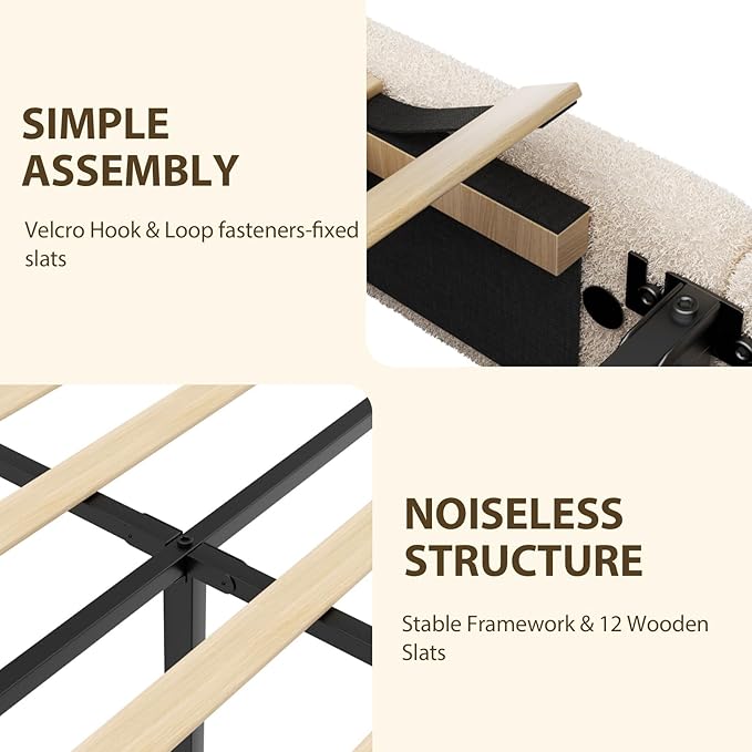 - Strong & Quiet-Thick wood and sturdy alloy make the bed frame durable. EVA strips keep it quiet. Sleep soundly in a stable, noise-free space