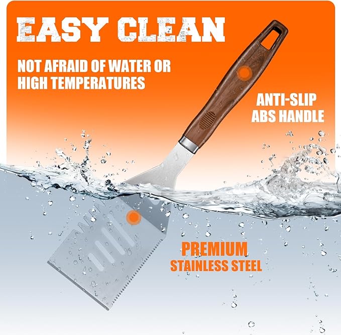 - Smart Multi-Tasker: Meet the star of the set—the 3-in-1 spatula that flips burgers, slices meat, and pops bottle caps like a boss. Designed for grill masters who crave efficiency, this space-saving tool keeps your station clutter-free and your swagger intact