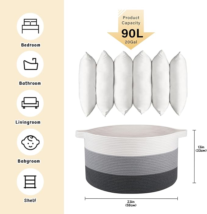 - Decorative Blanket Storage for Living Room: This round blanket holder is more stable and easier to restore its sahpe after you receive the package. The 23’’ x 13’’ large storage basket can also used to store blankets, pillows, cushions, toys, clothes and towels
