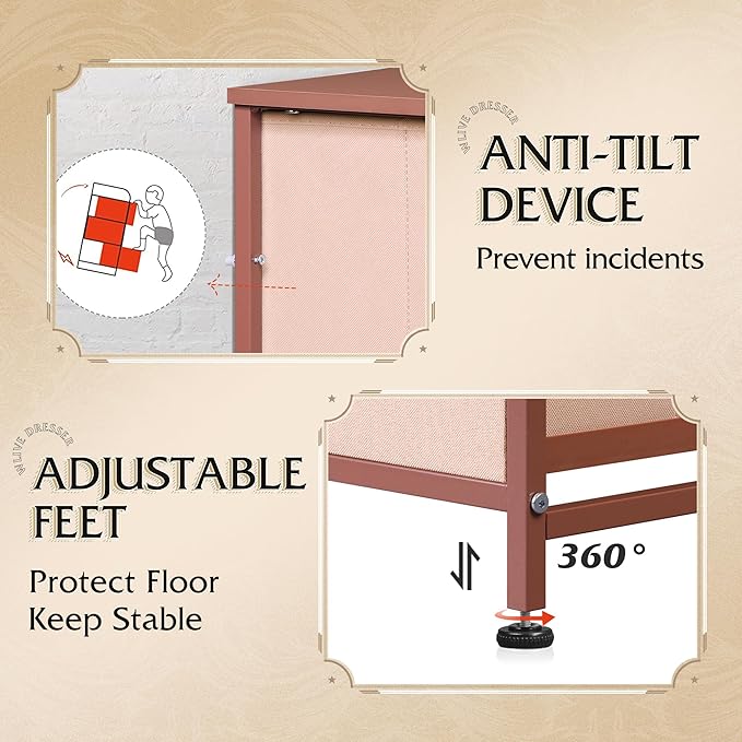 - 【✨ Stable Structure Safety Assured】Our storage drawers units is designed with 15mm thickened metal steel frame with cross support rods for durability. The storage organizer equipped with anti-tilt device, which can easily fix the cabinet to the wall, ensuring the safety of you, your family and pets, and enjoying a convenient life!