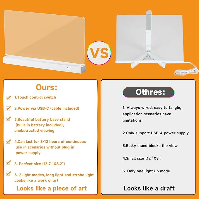 - 【Daily Planning Assistant】- Easily plan your day, week or month with the clear, spacious surface of our LED acrylic dry erase board. With a smooth writing surface and bright LED lights, you can easily plan your schedule, meet deadlines and achieve goals.