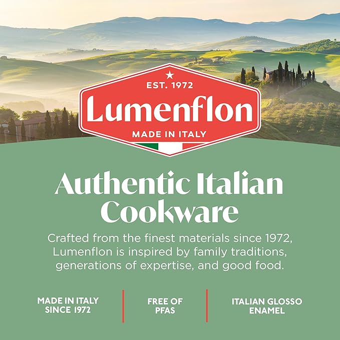 - Made in Italy: The expertly crafted quick-heating body is designed for perform on all stovetops, except induction, and is finished with Italian Glosso enamel, high walls for easy tossing, chip-free rims, and a stay-cool handle to keep cooking comfortable