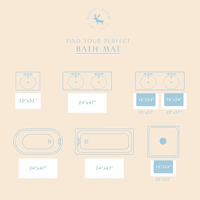 MONDAY MOOSE Bath Mat with Scalloped Wavy Ripple Design, Microfiber Absorbent Non Slip Tufted Rug for Floor, Shower or Kitchen (16x24 inch, Sky Blue)