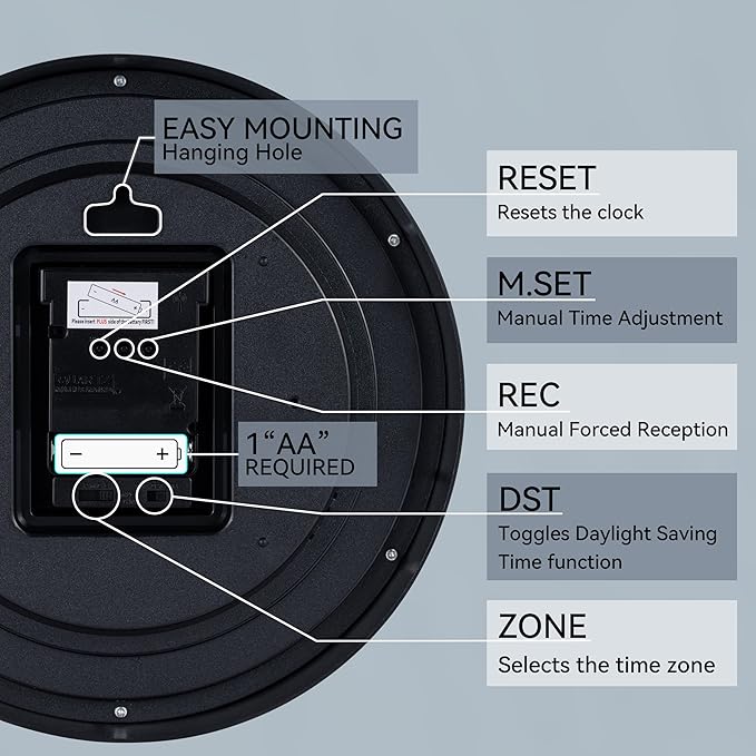 - 4、【Easily to Set】: The time zone can be easily set with the switch. (There are 4 options available: PT-Pacific, MT-Mountain, CT-Central, ET-Eastern). Additionally, the daylight saving time can be manually set for added convenience.