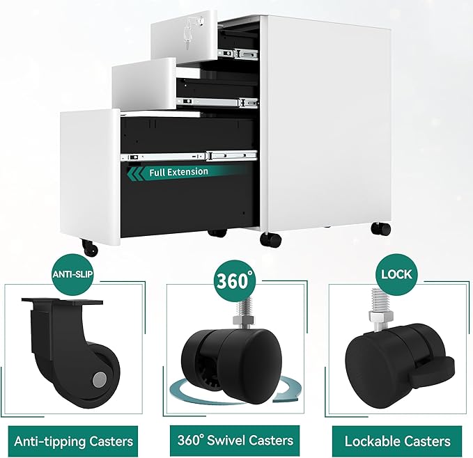 - Effortless Mobility: With five wheels, including an anti-tilt feature, the filling cabinet can be safely moved to any location; The four main wheels allow smooth mobility, making it simple to rearrange your office as needed