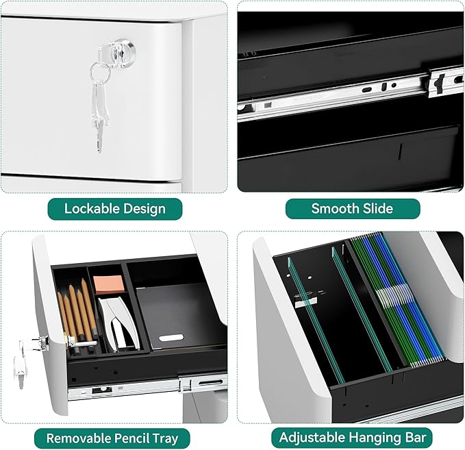 - Ideal For Office Home Use: The file cabinet under desk is space-efficient, suitable for both office and home settings; It can also serve as a personal storage cabinet for organizing letters, documents, and more