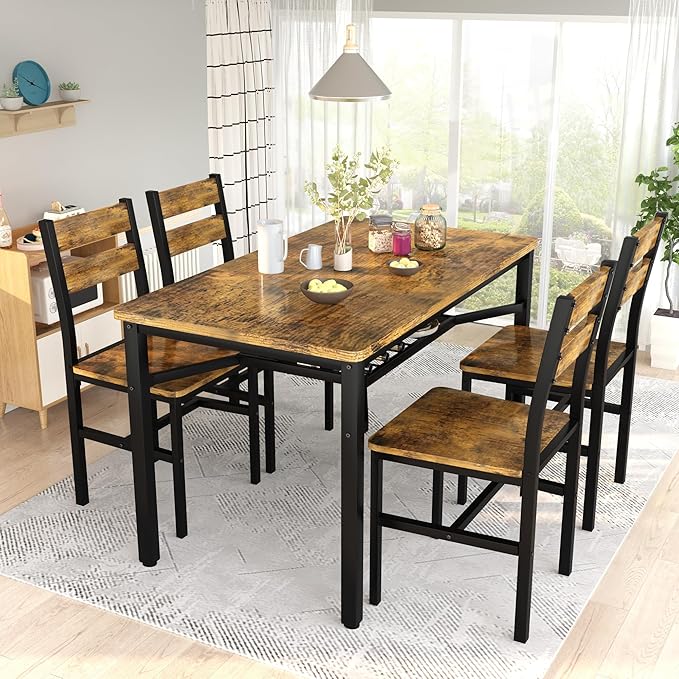 - Wood Dining Table for 4: This kitchen table set is made of high-quality wood boards with a natural wood grain, very beautiful and exudes a strong rustic farmhouse style, which will become an integral part of your home.
