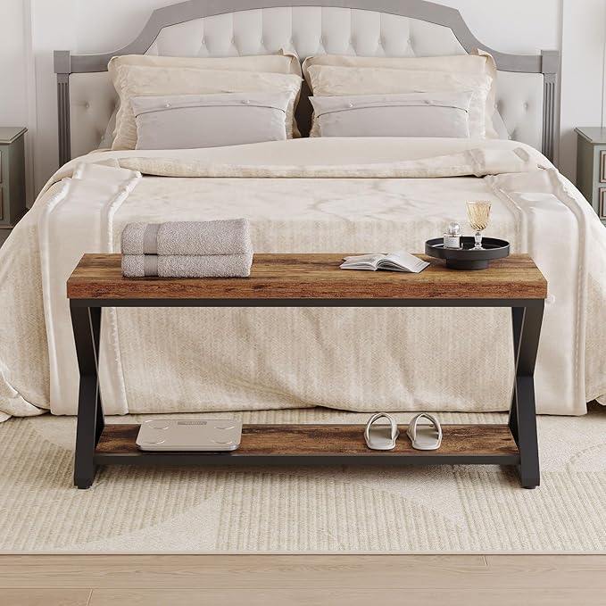 - Versatile Use: Perfect for entryways, mudrooms, or at the end of your bed, this industrial entryway bedroom bench easily blends function and style. Its classic rustic brown finish makes it a natural fit for farmhouse, industrial, or traditional interiors.