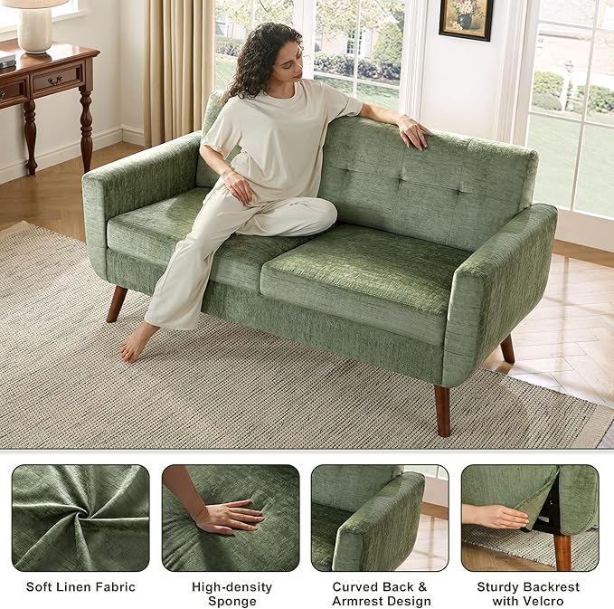 - TIMELESS APPEAL: Stylish tufted linen upholstery with a mid-century low-profile design brightens your whole home with modern craftsmanship and classic aesthetics. The small loveseat provides stylish and functional furniture for your apartment, adding more features to your home while decorating the room.