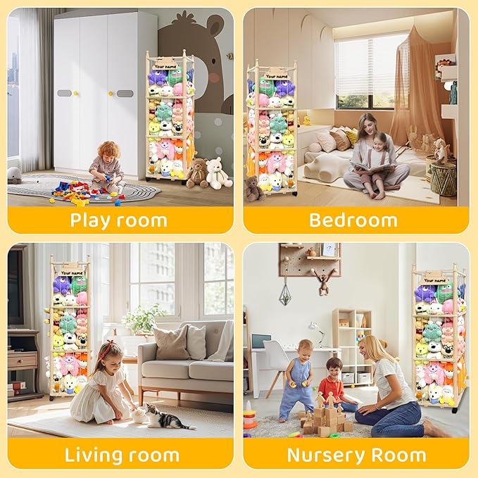 - Our stuffed animals storage cleverly combines storage, organization and display functions. It is not only a storage space for plush animals, but also a fun and interactive way to display them. It is an ideal gift for birthdays, Christmas and holidays. It is easy to move and suitable for many occasions such as playrooms, bedrooms, living rooms, children's rooms, nurseries and preschools, etc