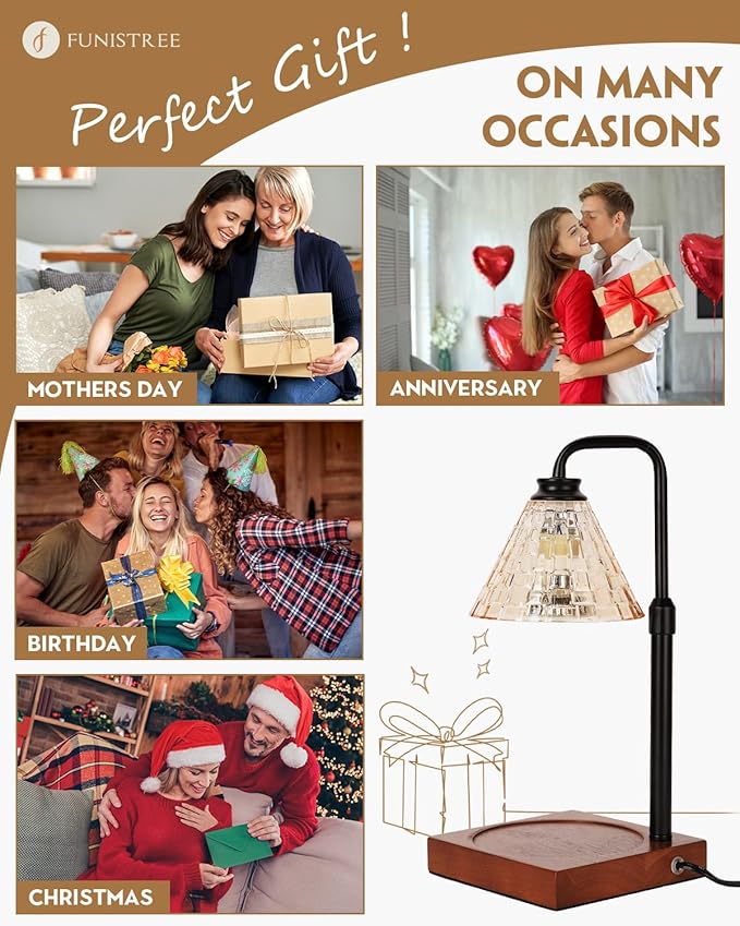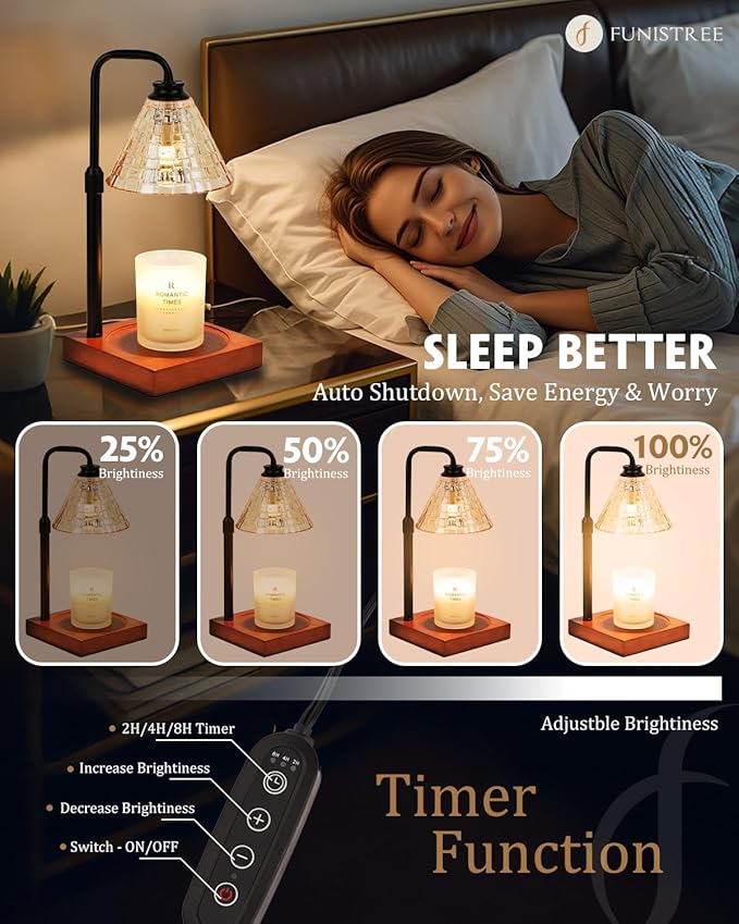 - Fully Dimmable & Hour Timer: Set it & forget it! 2H/4H/8H auto-off timer prevents overheating. Enjoy cozy aromatherapy while saving energy. Adjust brightness and heat with a smooth dimming knob for customized fragrance intensity. The auto-off timer ensures worry-free use overnight or while awayThe brighter the light, the more heat the bulb emits, the faster the candle melts
