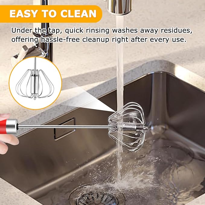 - No Batteries or Electricity Needed: This whisk operates without the need for batteries or electricity. The hand-press mechanism provides reliable mixing power while saving you energy and time