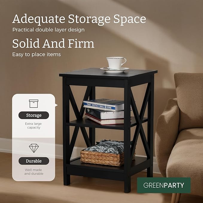 - Small Side Table for Small Spaces - This small table is perfect for tight areas. One of its advantages is that it has multiple shelves for storage, making it both practical and stylish. Each shelf can hold up to 33 pounds, so you can confidently place books on the table.