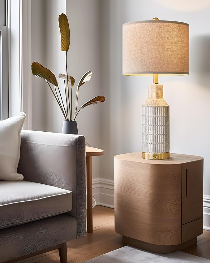 - Modern Style Design: This pair of table lamps designs with a ceramic lamp body and linen fabric lampshade. This lamp not only looks fashionable and stylish, but also creates a modern atmosphere in your home