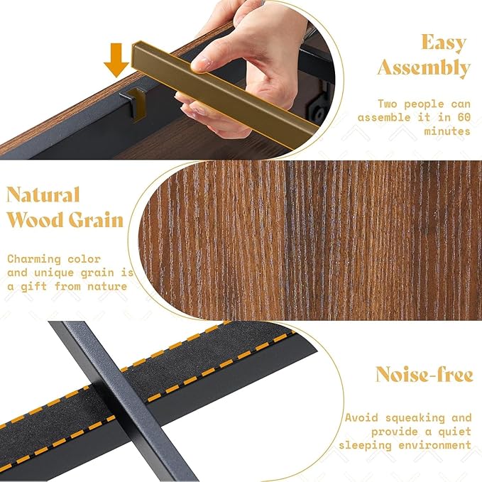 - 【Farmhouse & Rustic Style】Platform bed features a natural wood grain finish and barn headboard, charming classic farmhouse element that brings a rustic and vintage aesthetic to your room and matches any home style