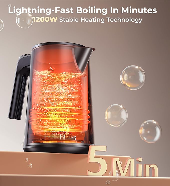 • 【Versatile Electric Kettle with Precision Control】 This electric tea kettle features 7 temperature settings(115°F-212°F), ensuring perfect brewing for green tea, coffee, or oatmeal. The rapid-boil technology heats water faster than standard kettles, while the auto-shutoff function enhances safety during use