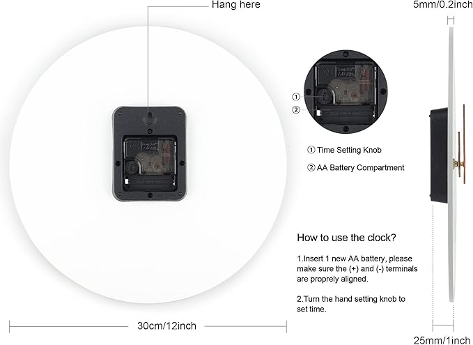 - No Annoying Ticking: The silent, precise quartz clock movement provides you a quiet environment without humming sound and ensures accurate time. After inserting 1 AA battery, you can put it in bedroom or office and it won't affect your sleeping or working. (Note: Battery is not provided.)