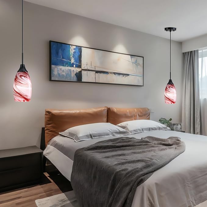 - 【BULB REQUIREMENTS】This mini burgundy marble glass pendant light requires 3 x E26 medium base bulb (LED,CFL,Incandescent), 60W max. Fully dimmable when used with a dimmable bulb and dimmer switch (bulb and dimmer switch are not included)