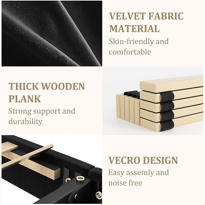- BED FRAME WITH HEADBOARD: This king bed frame with 47-inch tall headboard and wing panels, wrapped in velvet with a tufted texture. It incorporates high-resilience memory foam, not only enhancing the frame's comfort but also adding a warm and elegant artistic ambiance to the bedroom.