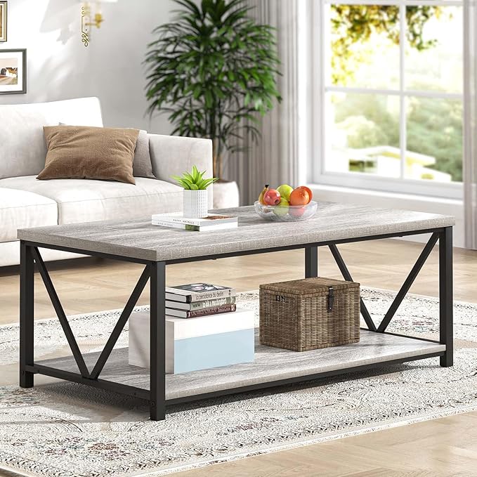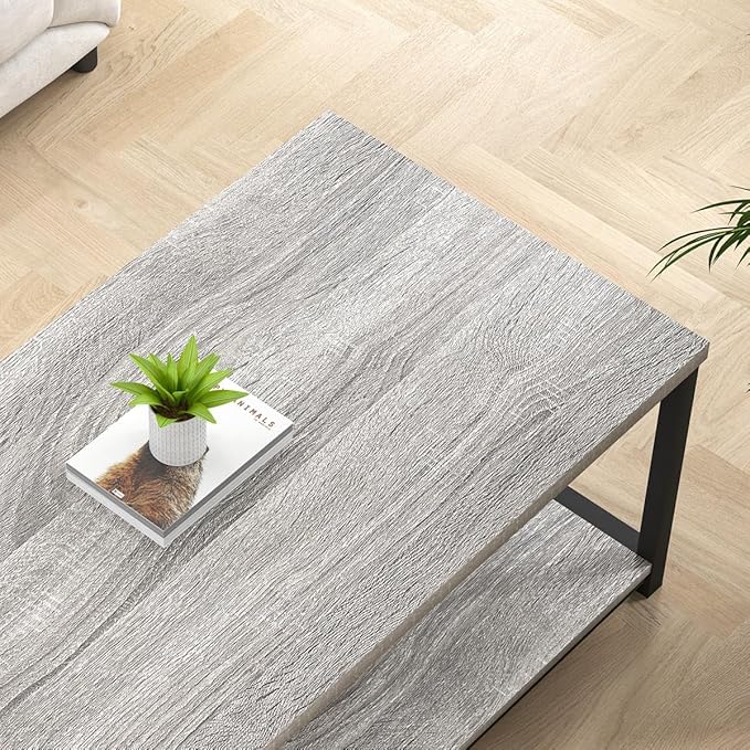 - Modern & Industrial Coffee Table: Blending a light grey wood grain surface with black powder-coated metal legs, this coffee table showcases a simple, modern, and industrial design—perfect for contemporary, retro, or unique living room and office spaces