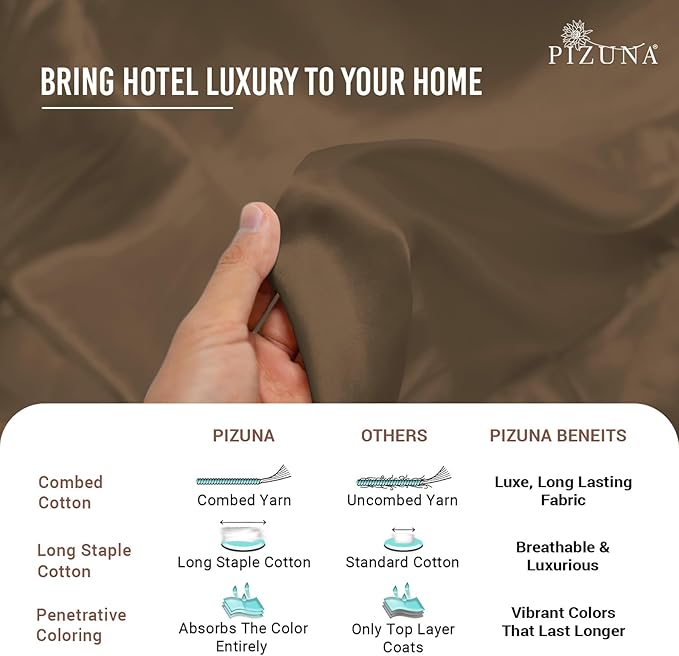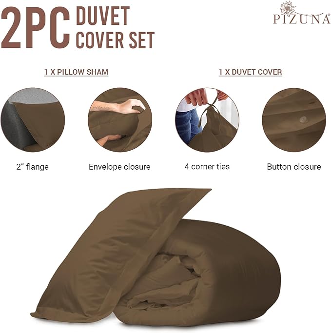 Pizuna Pure 100% Cotton Twin Duvet Cover Set, Luxurious 400 Thread Count Long Staple Cotton Sateen Weave with Button Closure (Combed Woody Brown Cotton Duvet Cover Twin)
