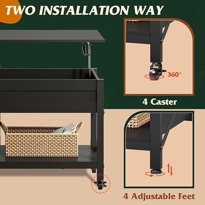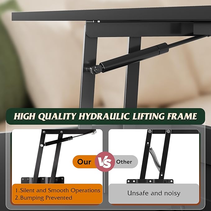 - 【LIFT-TOP Design】 Our coffee table features a sturdy lift-top design that effortlessly raises and lowers with stability and safety in mind. Crafted with a robust metal framework, it ensures durability while providing a secure platform for your belongings.