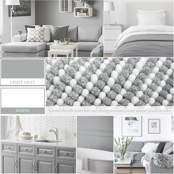 - 【EXTRA ABSORBENT BATHROOM RUG】: The luxury performance chenille microfibers can quickly absorb moisture from your feet when you step out of the bath or shower, and save your floors from dripping water, and dries quickly, making your feet feel the ultimate luxury enjoyment