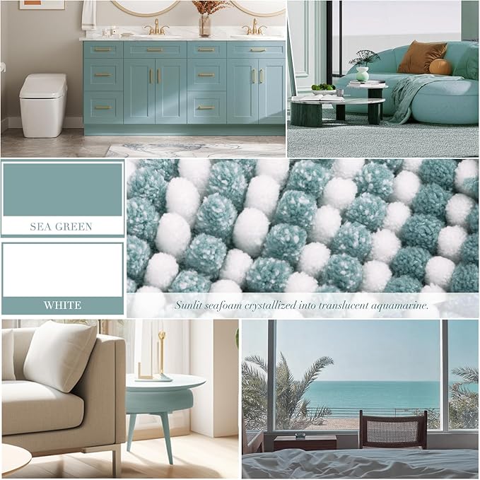 BSICPRO Bathroom Rugs and Mats Sets, 2 Piece Thick Absorbent Chenille Bath Mat Rug Set Non Slip, Soft Shaggy Bath Room Floor Mats for Bathroom, Machine Washable (Sea Green, 20" x 32" Plus 16" x 24")