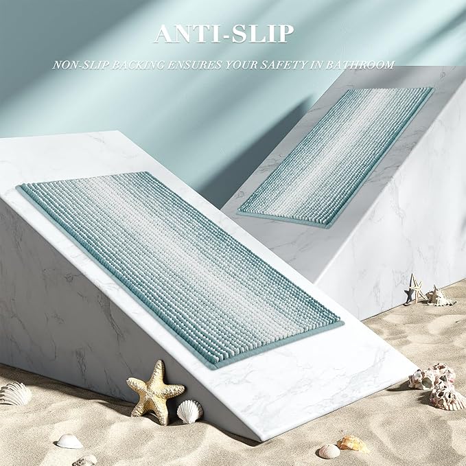 - 【EXTRA ABSORBENT BATHROOM RUG】: The luxury performance chenille microfibers can quickly absorb moisture from your feet when you step out of the bath or shower, and save your floors from dripping water, and dries quickly, making your feet feel the ultimate luxury enjoyment