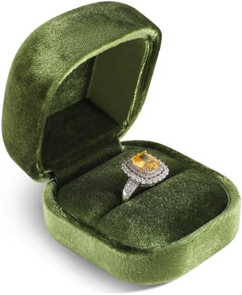 Resilient Velvet Ring Earrings Bracelet Necklace Display Box, Travel Mini Jewelry Organizer Case (Green, Ring Box)