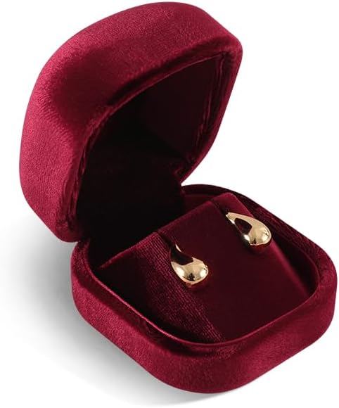 Resilient Velvet Ring Earrings Bracelet Necklace Display Box, Travel Mini Jewelry Organizer Case (Red, Earrings Box)
